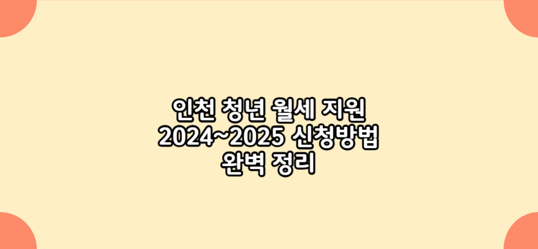 인천 청년 월세 지원 2024~2025 신청방법 완벽 정리