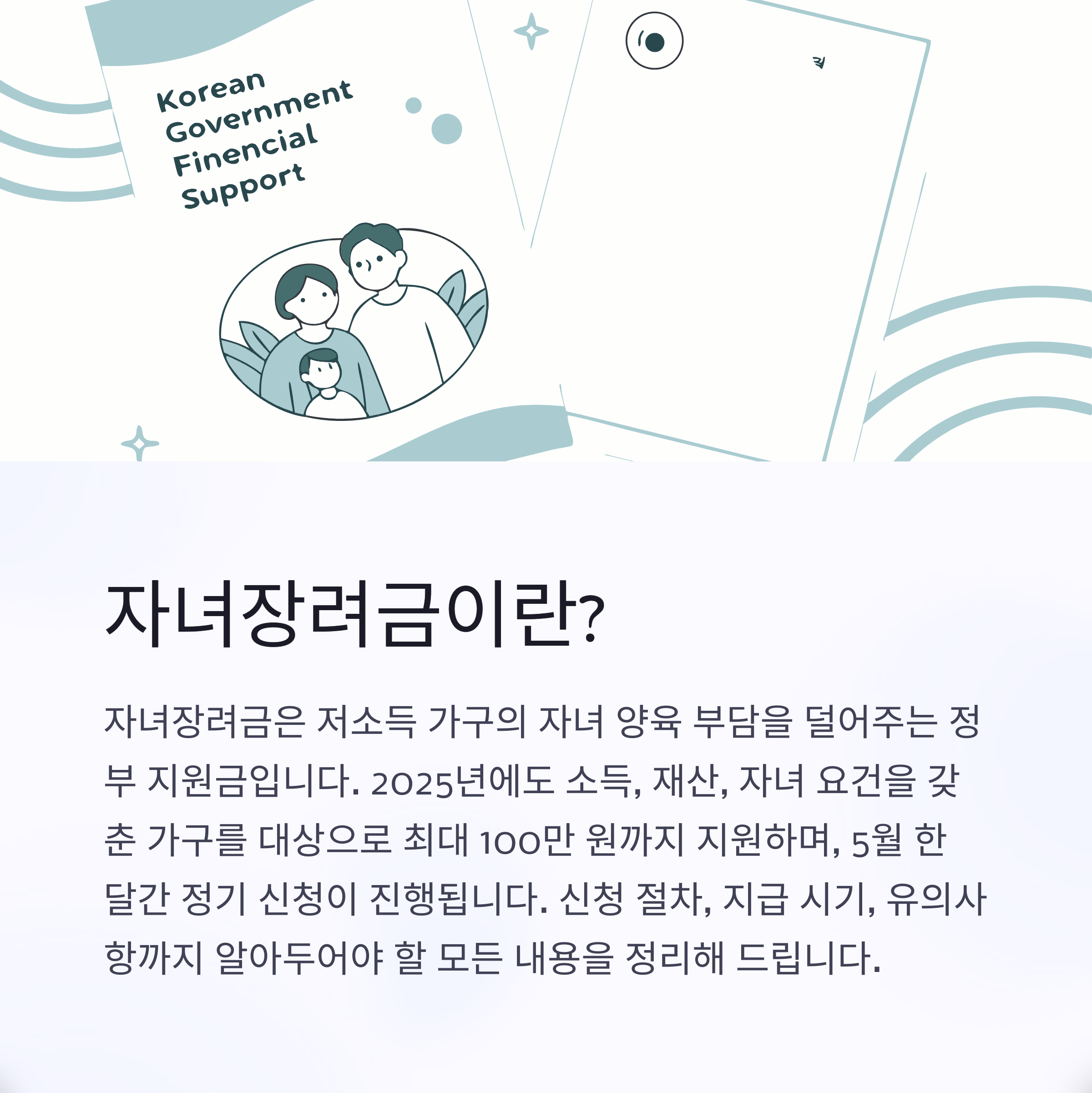 자녀장려금은 저소득 가구의 자녀 양육 부담을 덜어주는 정부 지원금입니다.