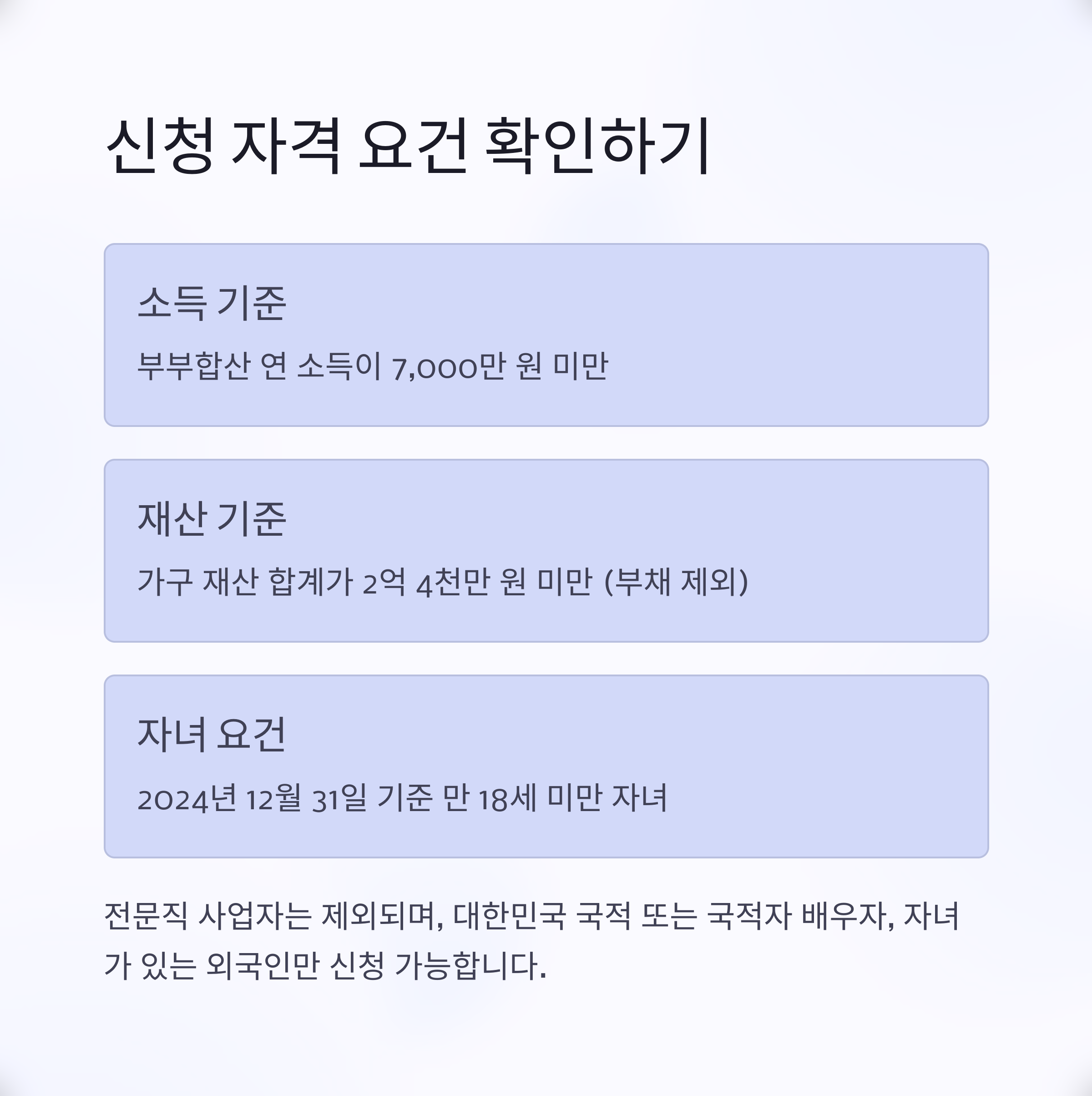 셋째, 2024년 12월 31일 기준 만 18세 미만 자녀가 있어야 합니다.