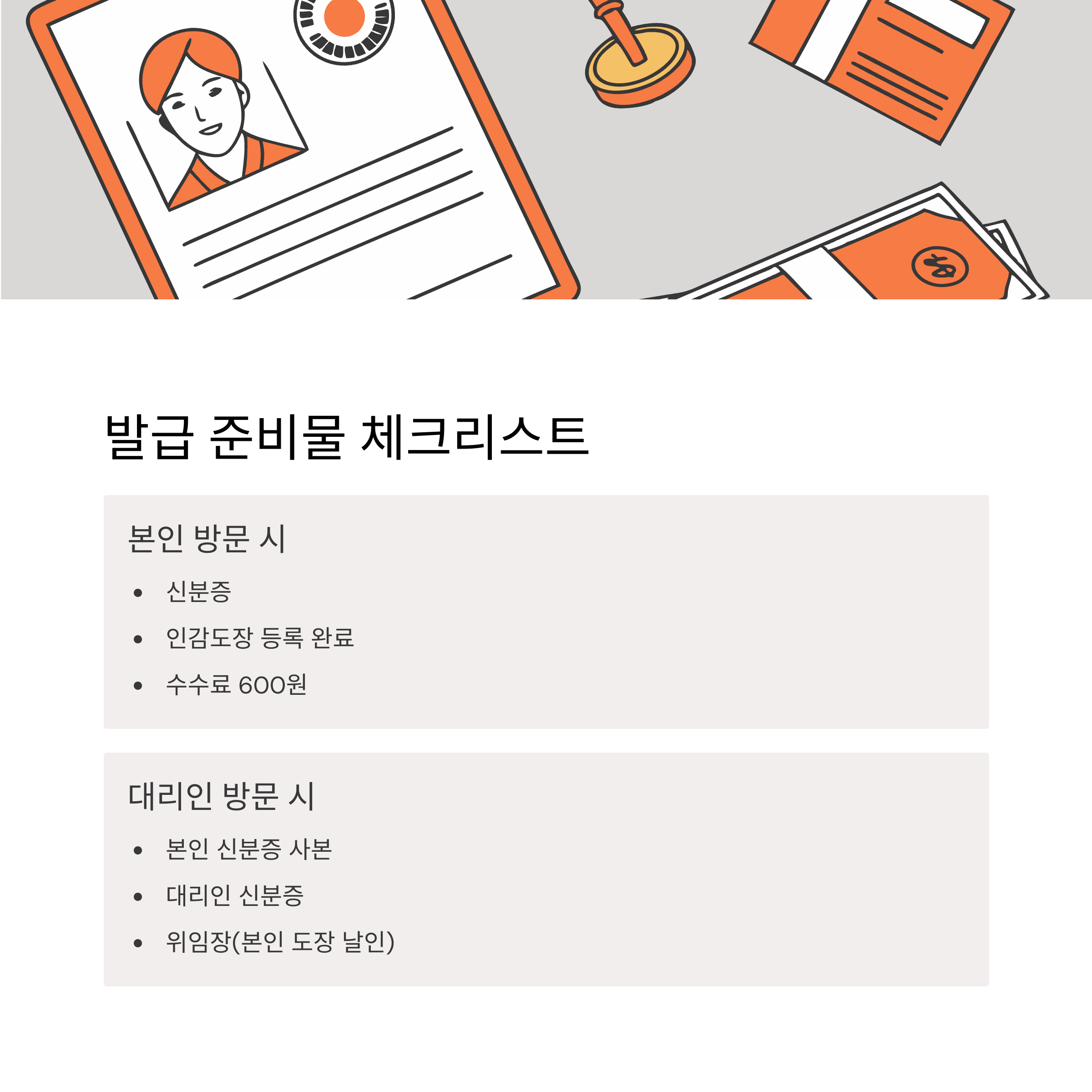 실제로 인감증명서 발급을 위해 필요한 준비물은 다음과 같습니다.