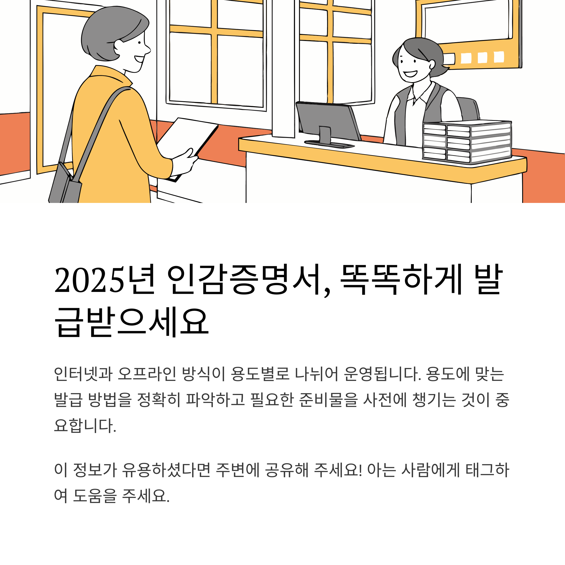 2025년 인감증명서 발급은 인터넷과 오프라인 방식이 용도별로 나뉘어 운영됩니다.