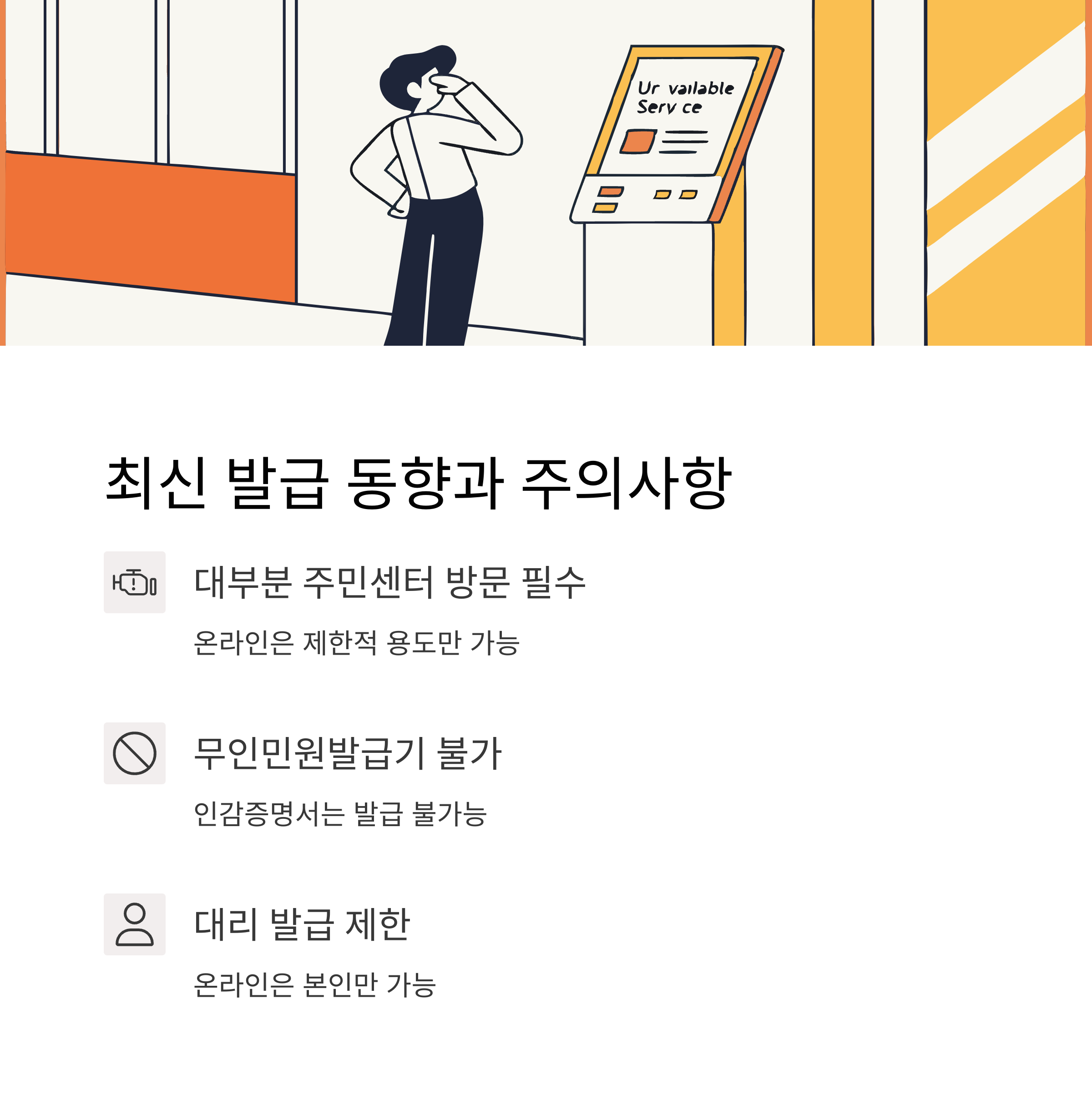 무인민원발급기에서는 인감증명서를 발급할 수 없으니 주의해야 합니다.