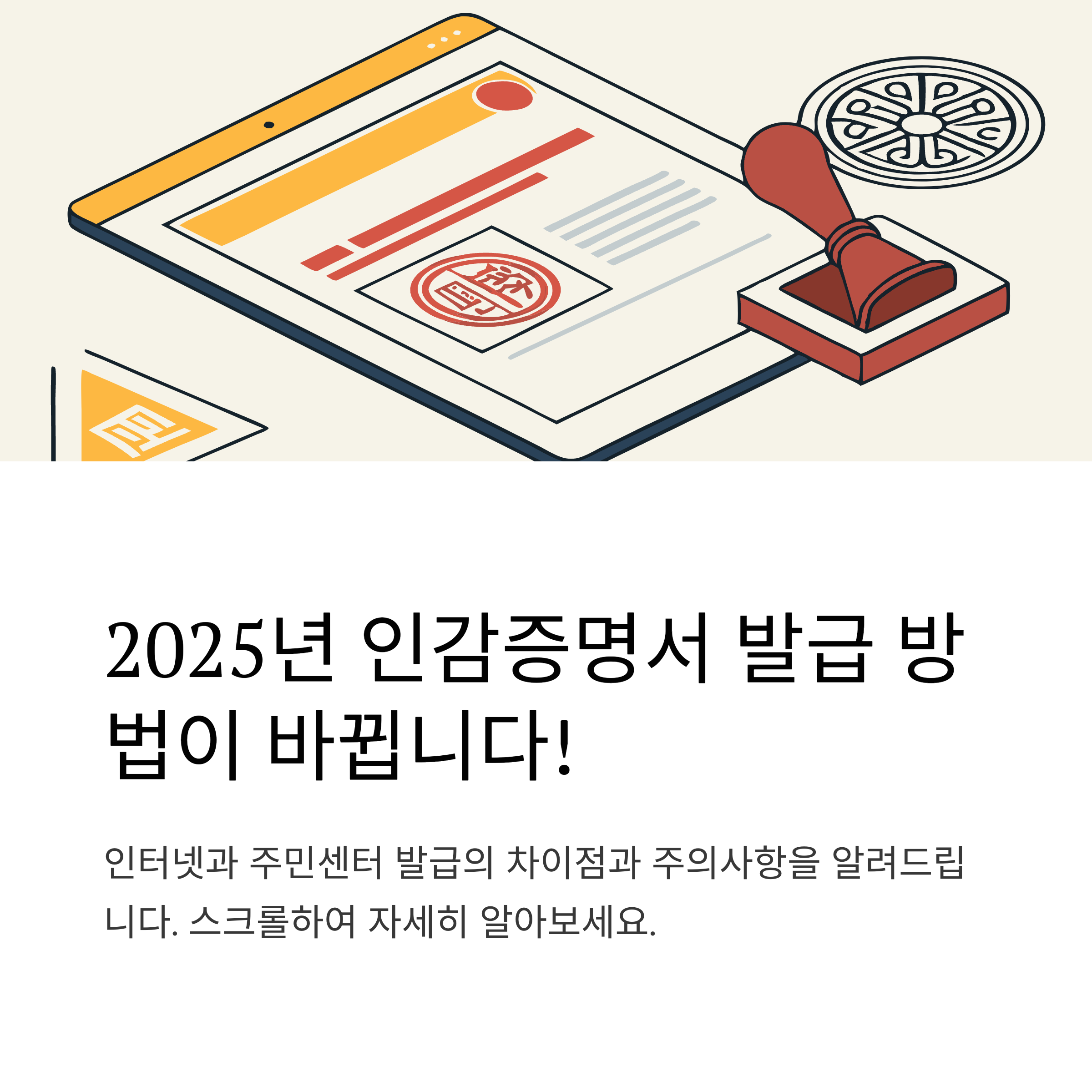 2025년 인감증명서 발급은 인터넷과 오프라인 방식이 용도별로 나뉘어 운영됩니다.