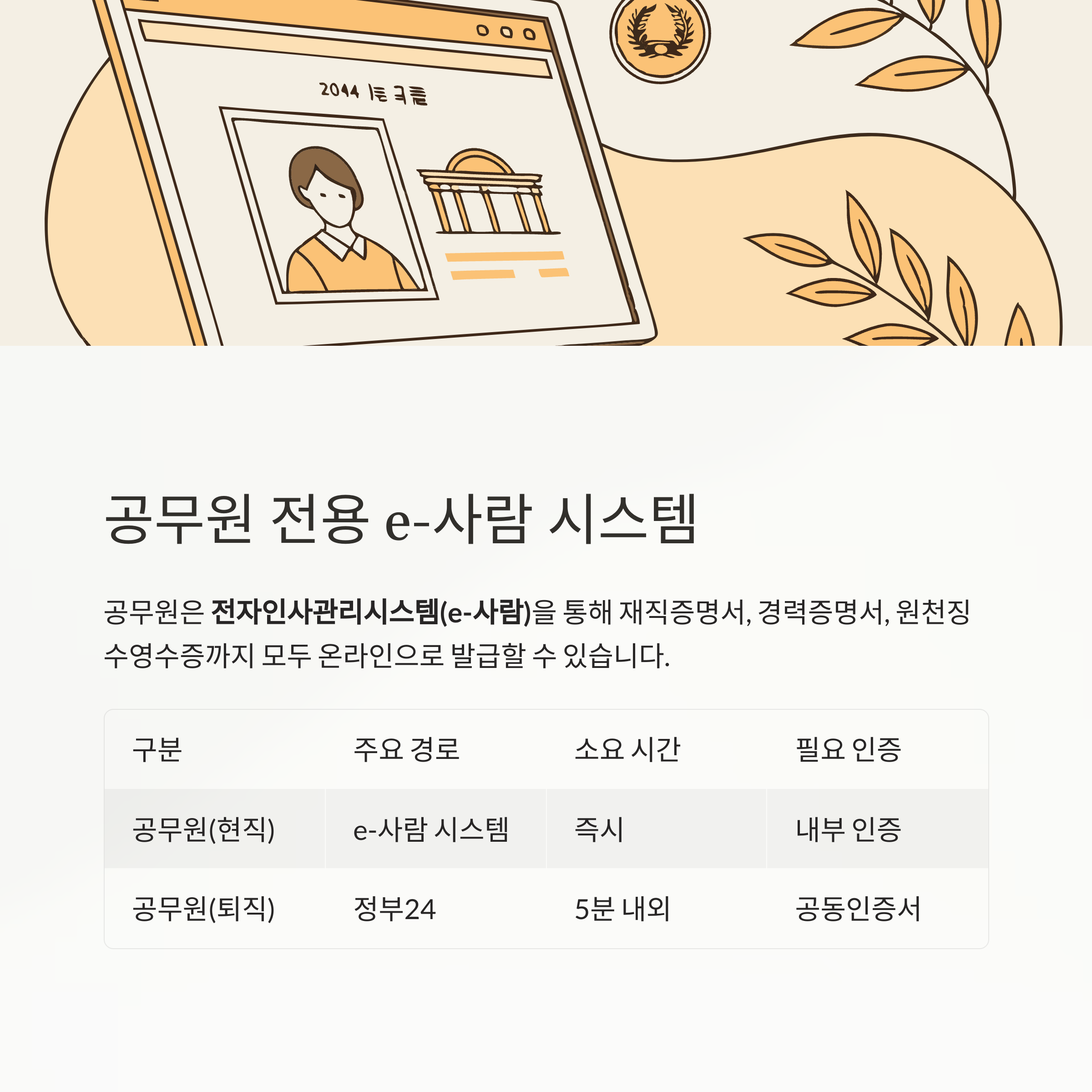 | 공무원(현직) | e-사람 시스템 | 즉시 | 내부 인증 | 공무원 전용 |