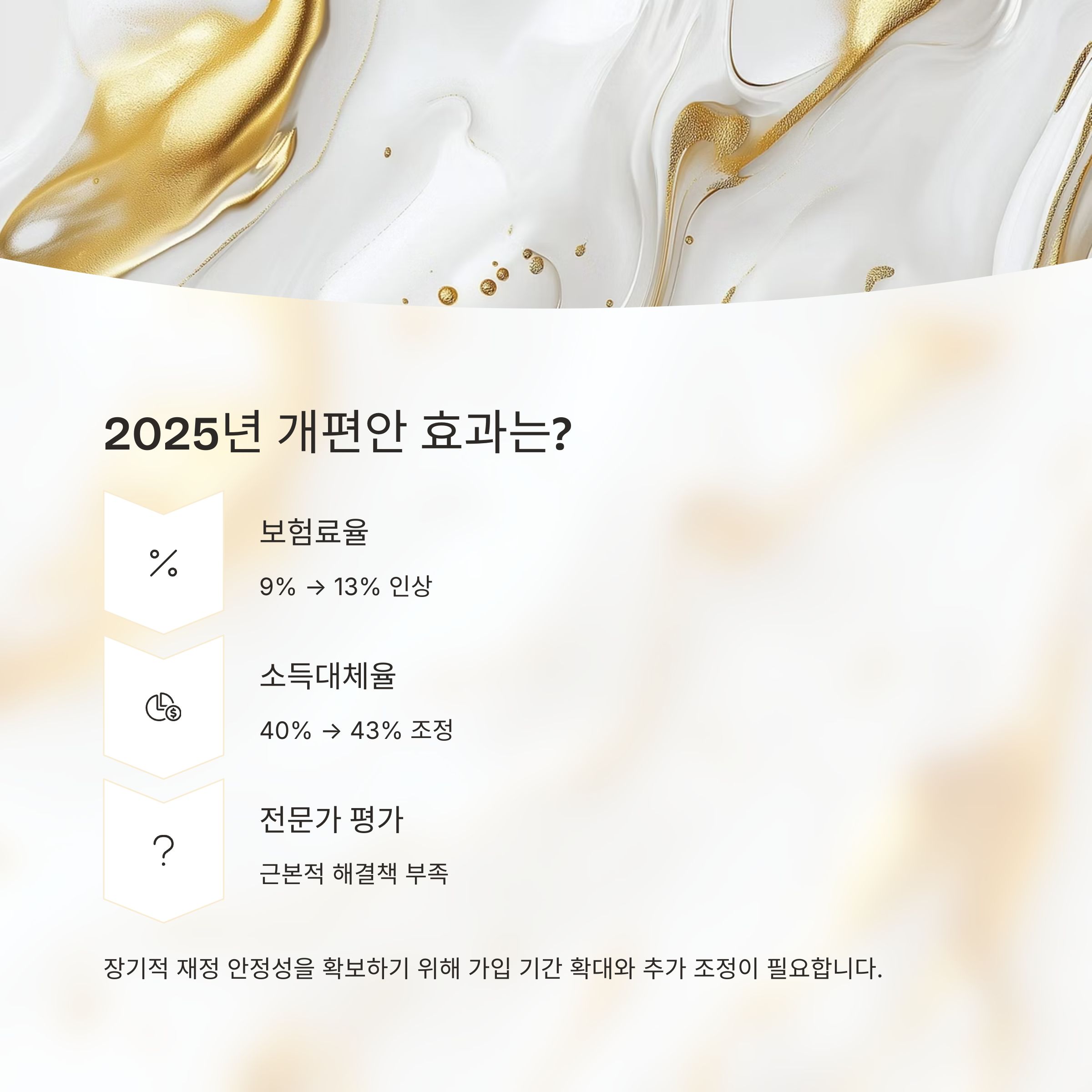 2025년 개편안은 보험료율을 9%에서 13%로 인상하고
