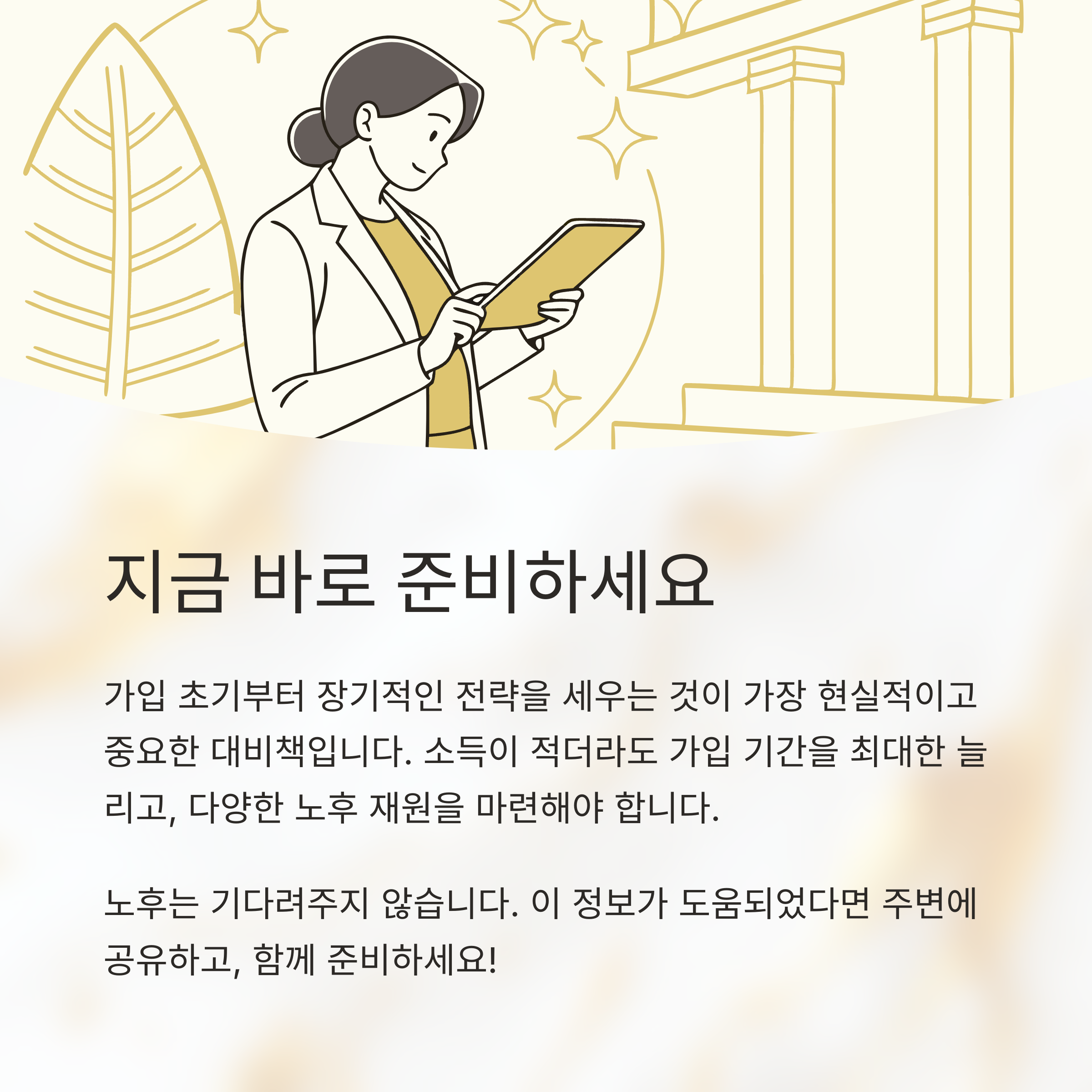 따라서 개인연금, 퇴직연금, 자산관리 등 다양한 노후 전략이 병행되어야 합니다.