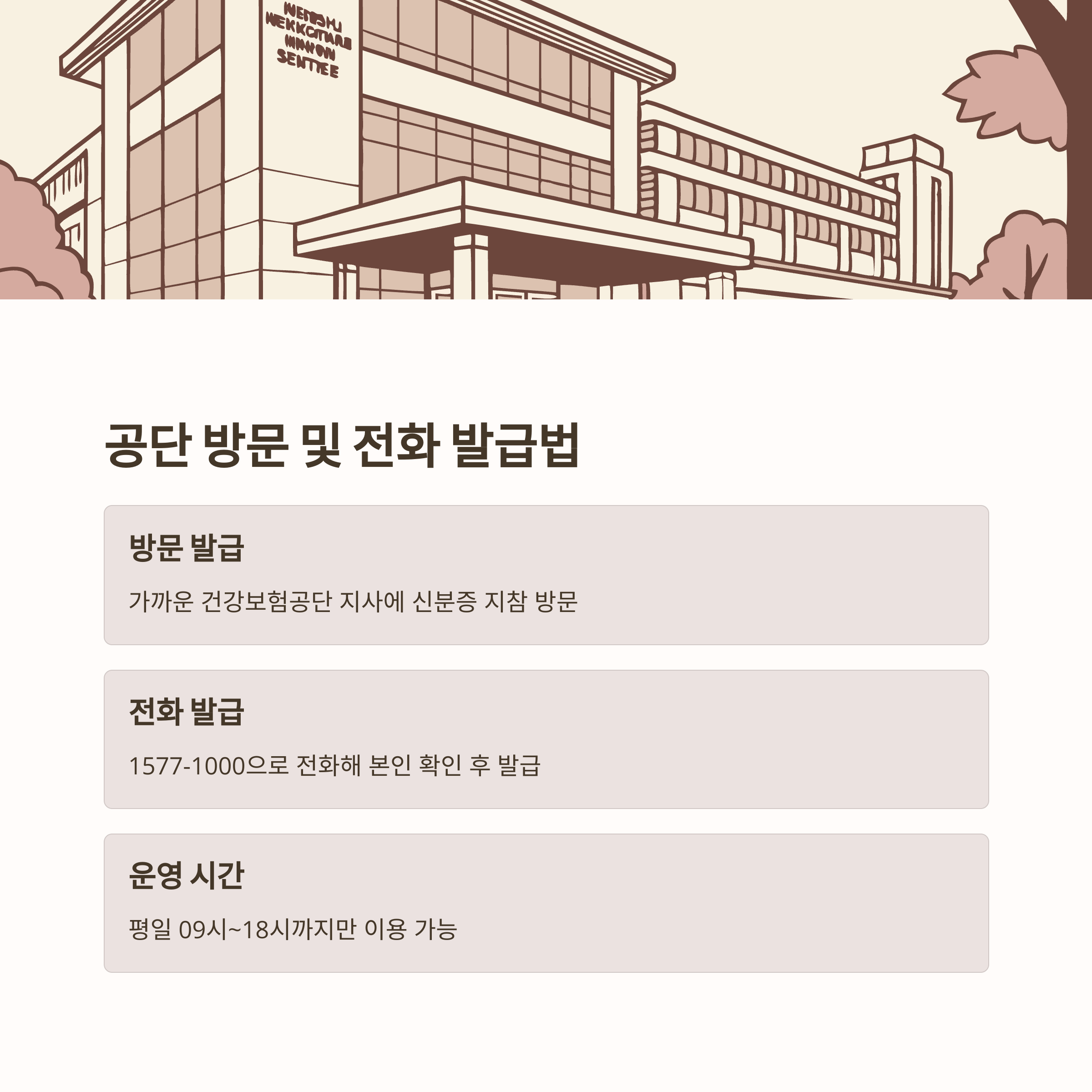 | 공단 방문/전화 | 신분증 | 5~10분 | 프린트, 이메일 | 평일 09시~18시 |