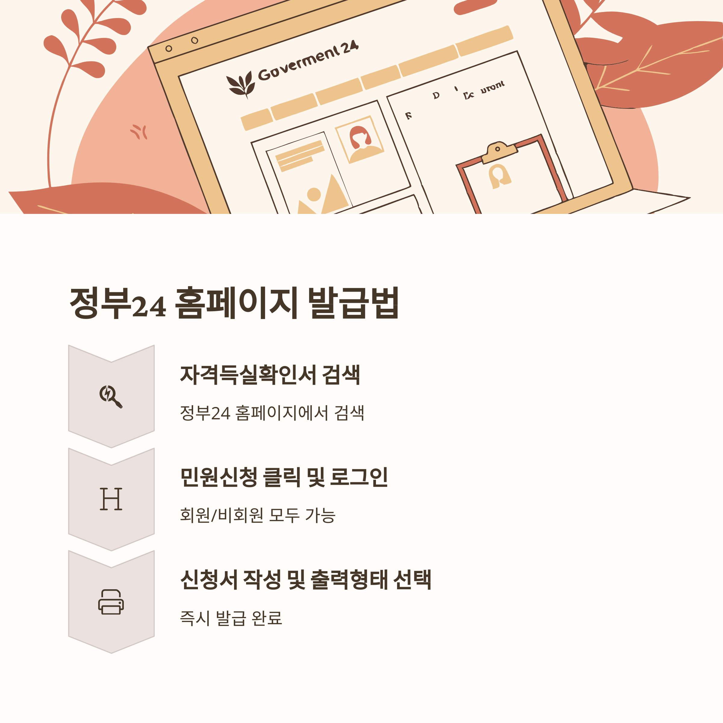 | 정부24 홈페이지 | 공동/간편 인증 | 1분 이내 | PDF, 프린트 | 24시간 운영 |