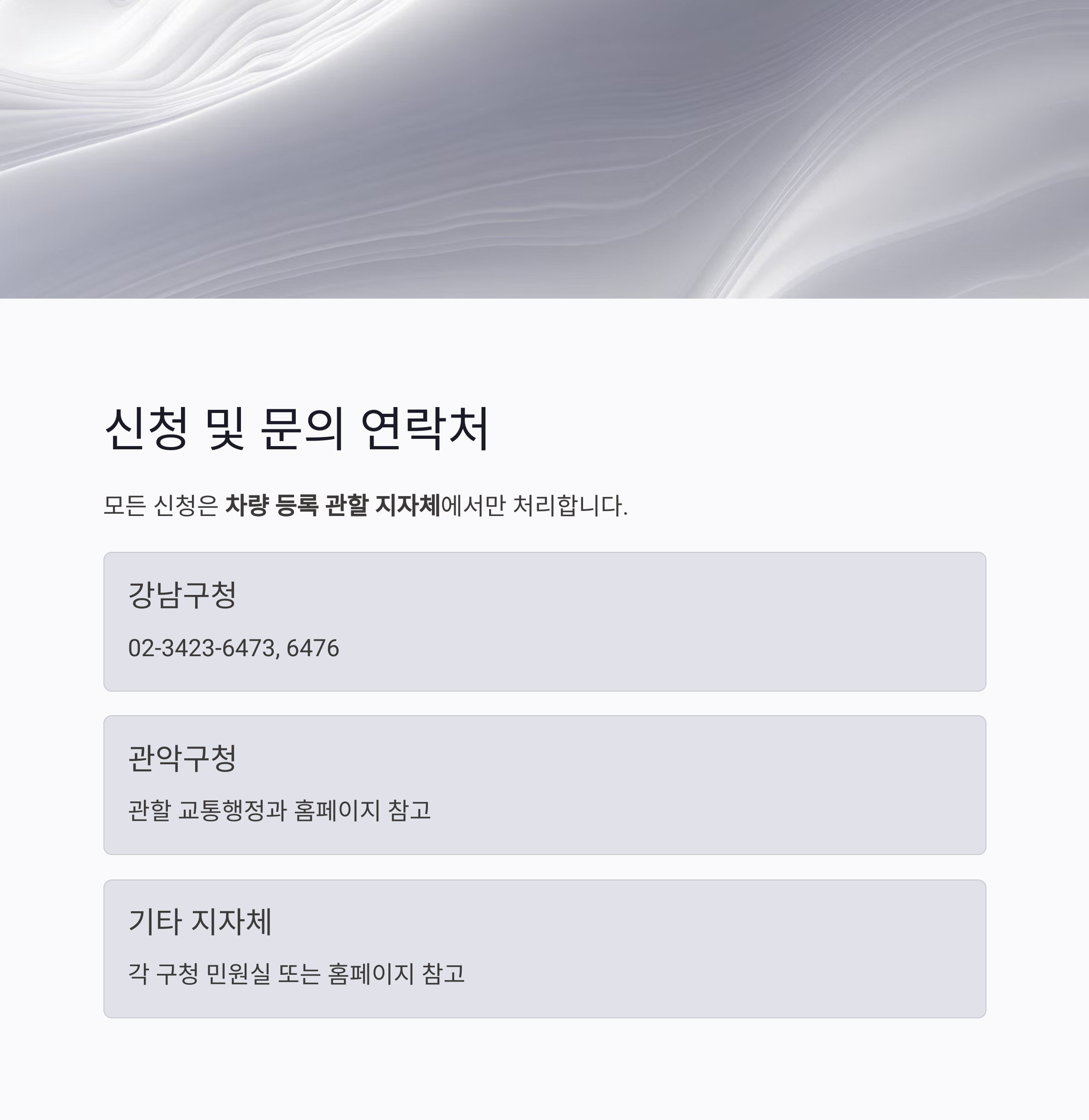 모든 신청은 차량 등록 관할 지자체에서 처리합니다.