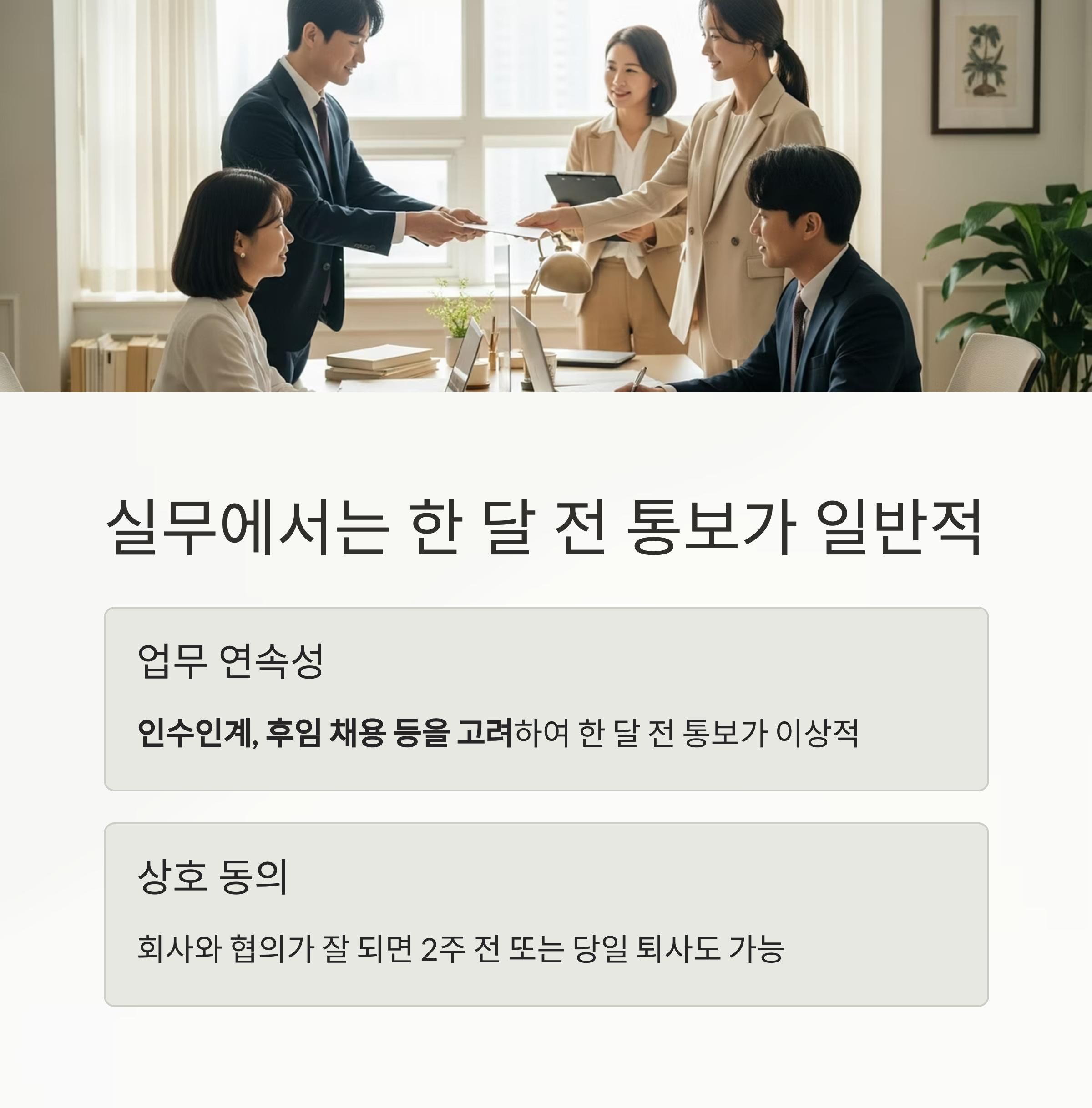 관행 실무상 2주~1개월 전 통보, 회사 운영을 위한 배려